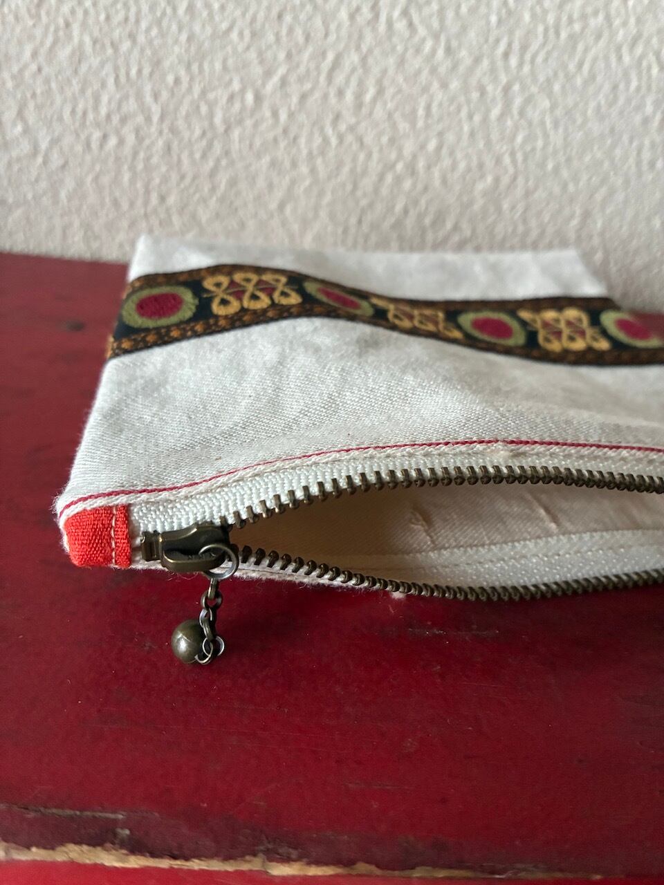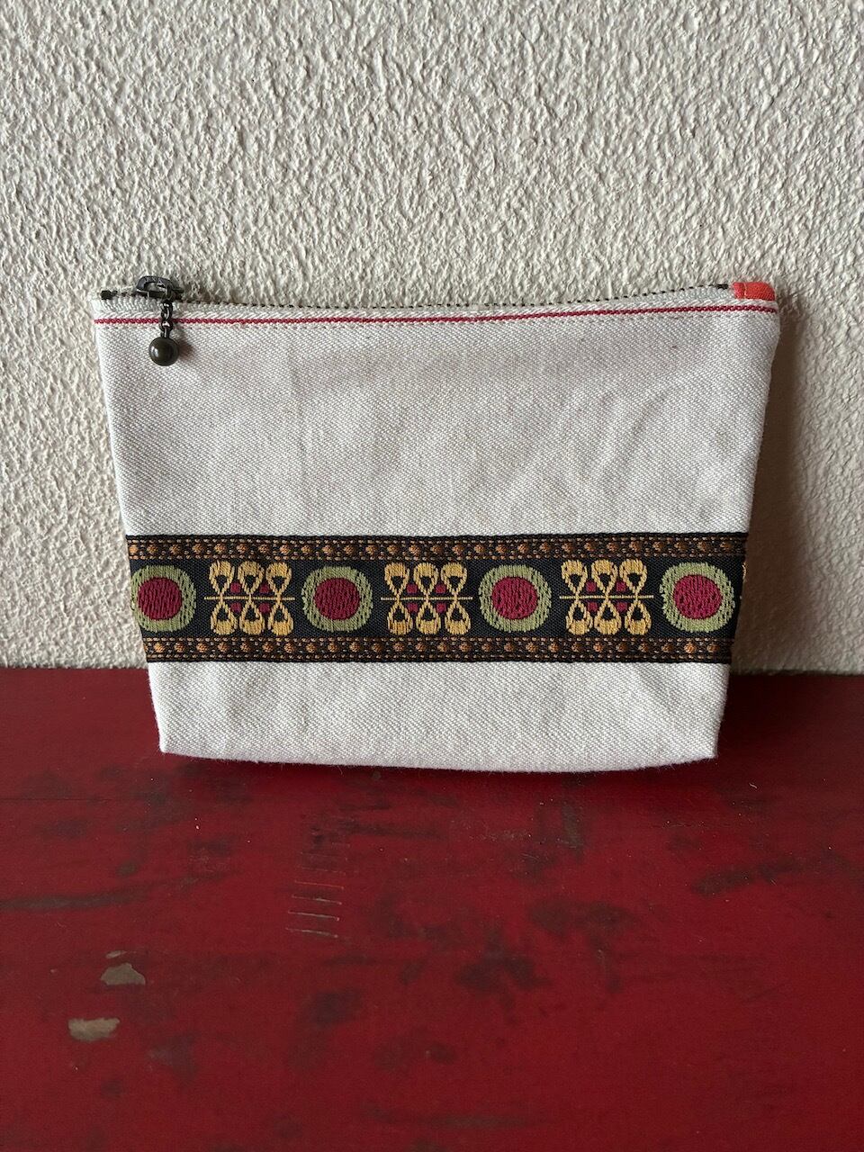 レトロな雰囲気のチロリアンテープを縫い付けた