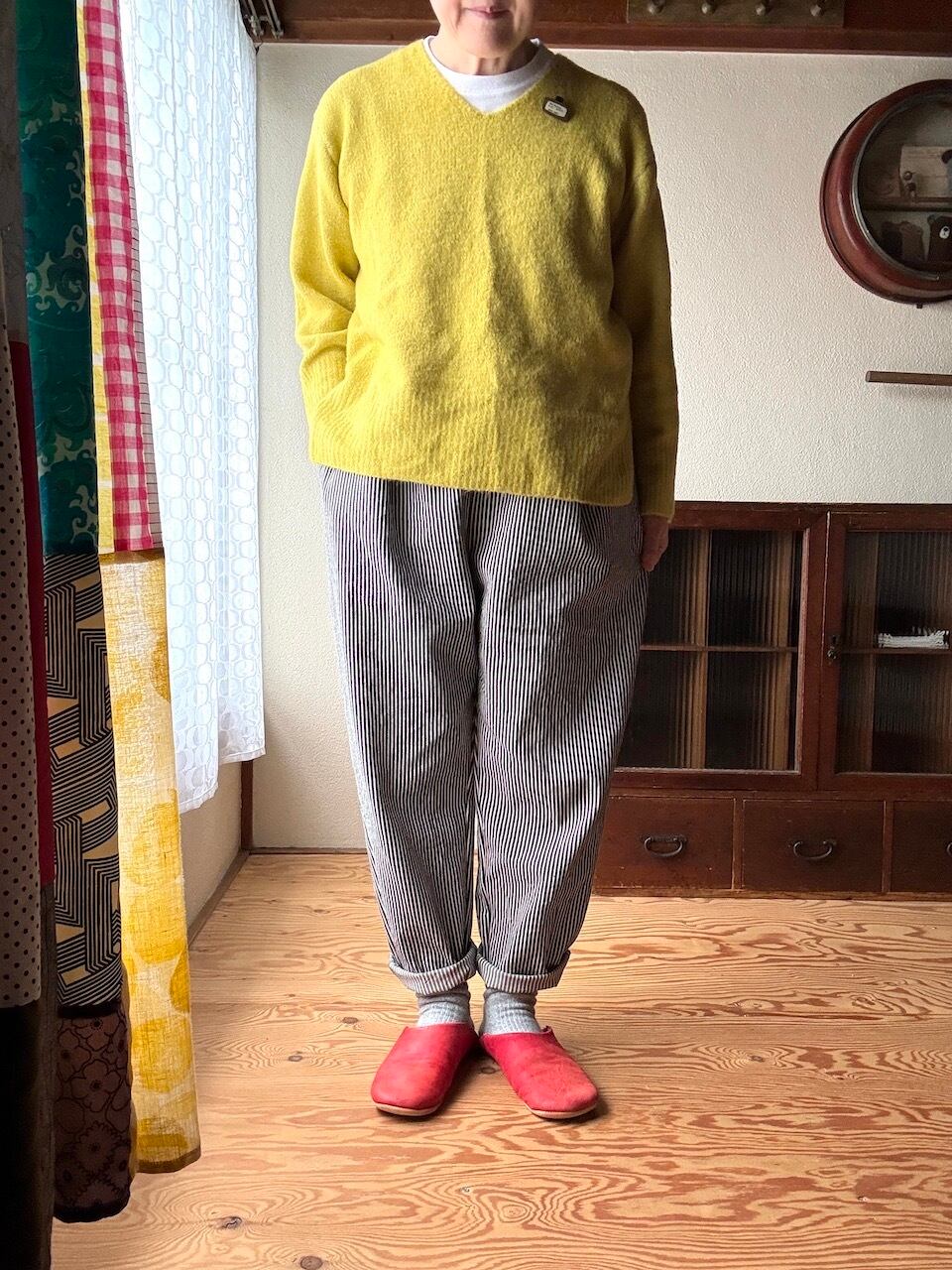 ちょいサルエルテーパードパンツ/ヒッコリーストライプ黒・グリーン