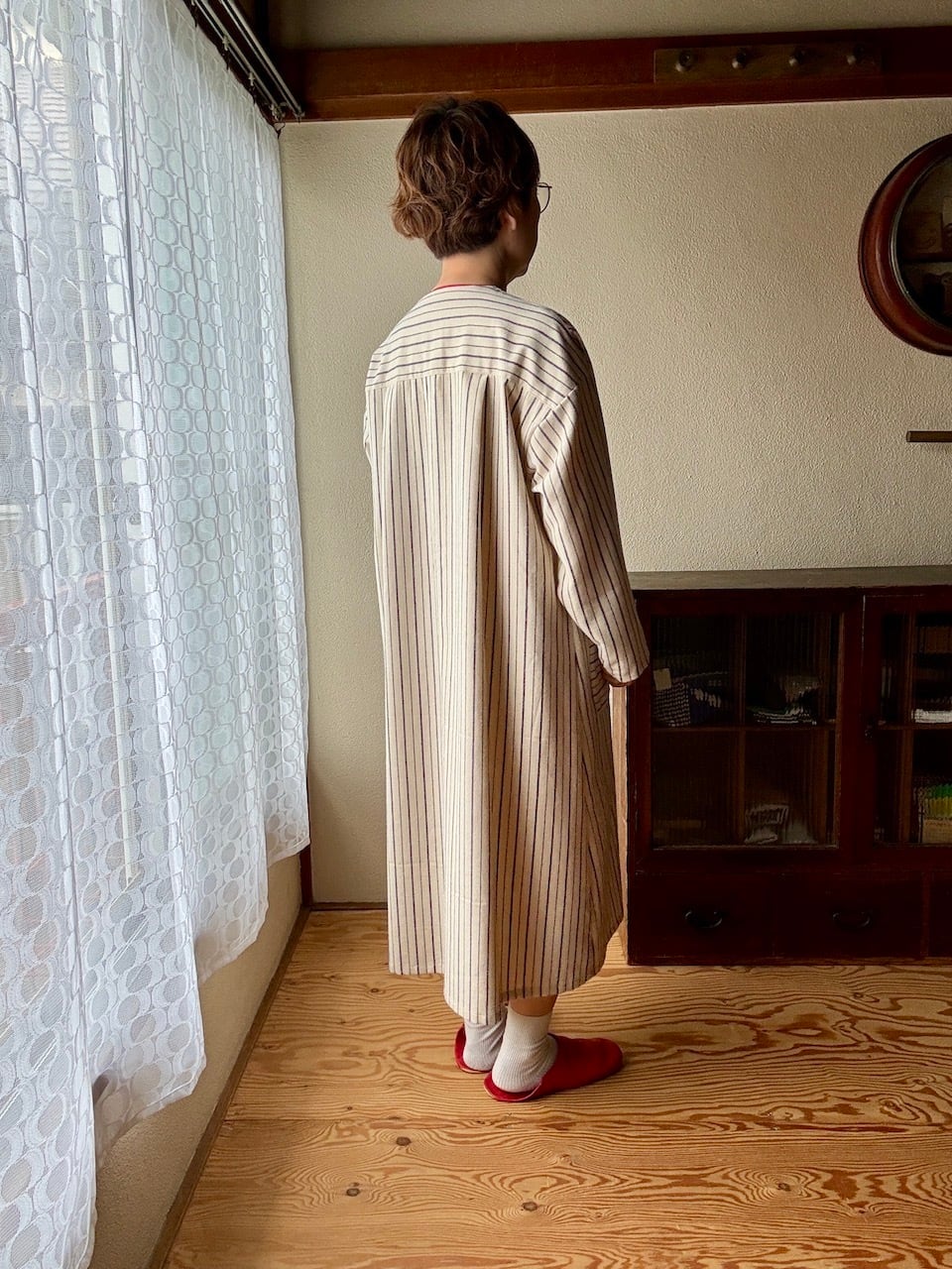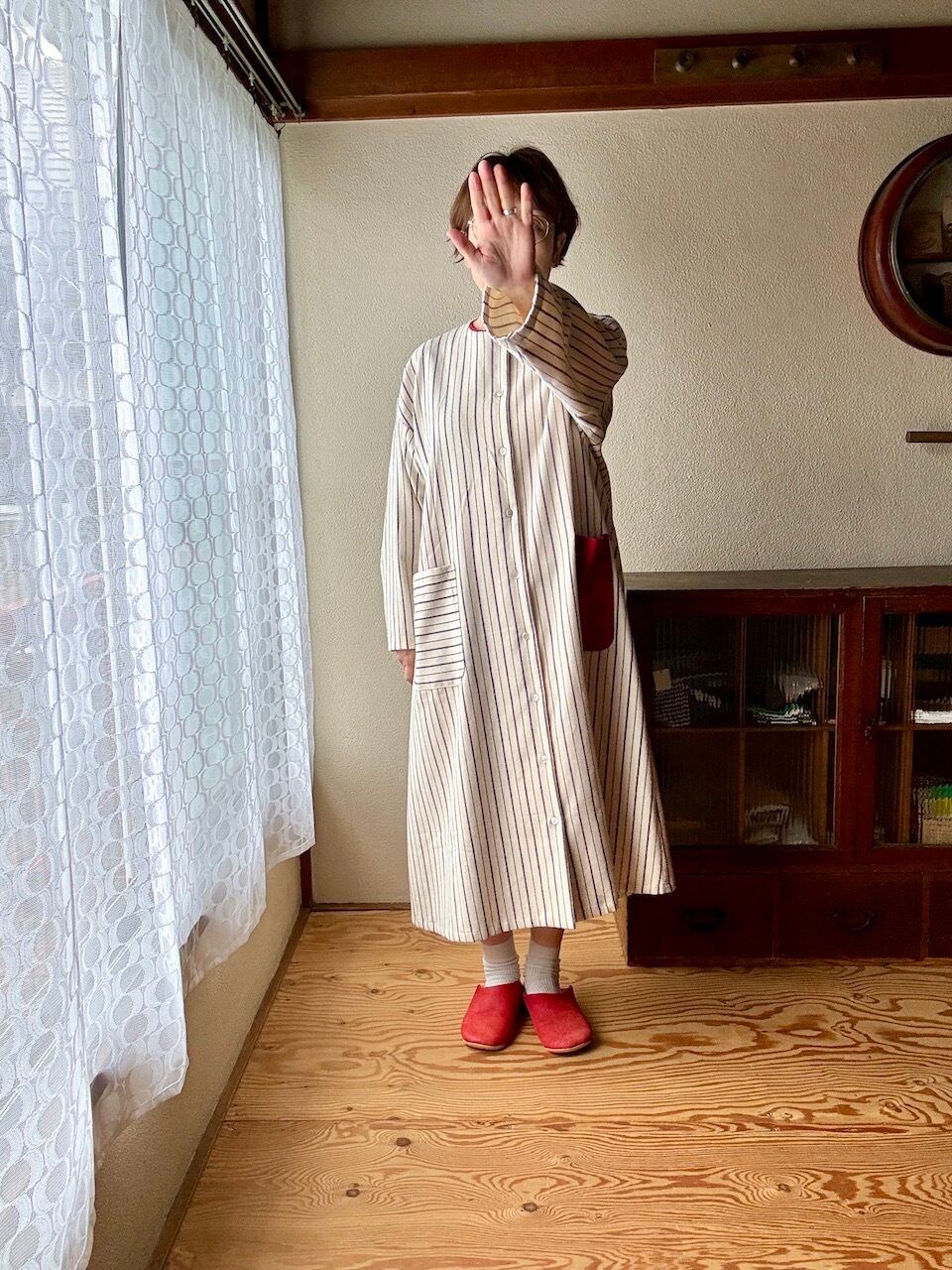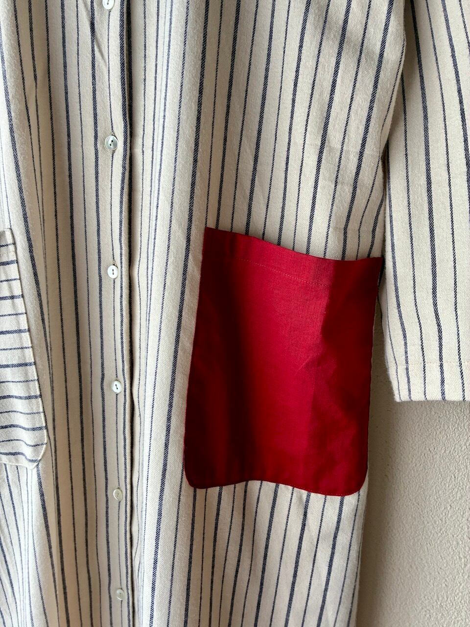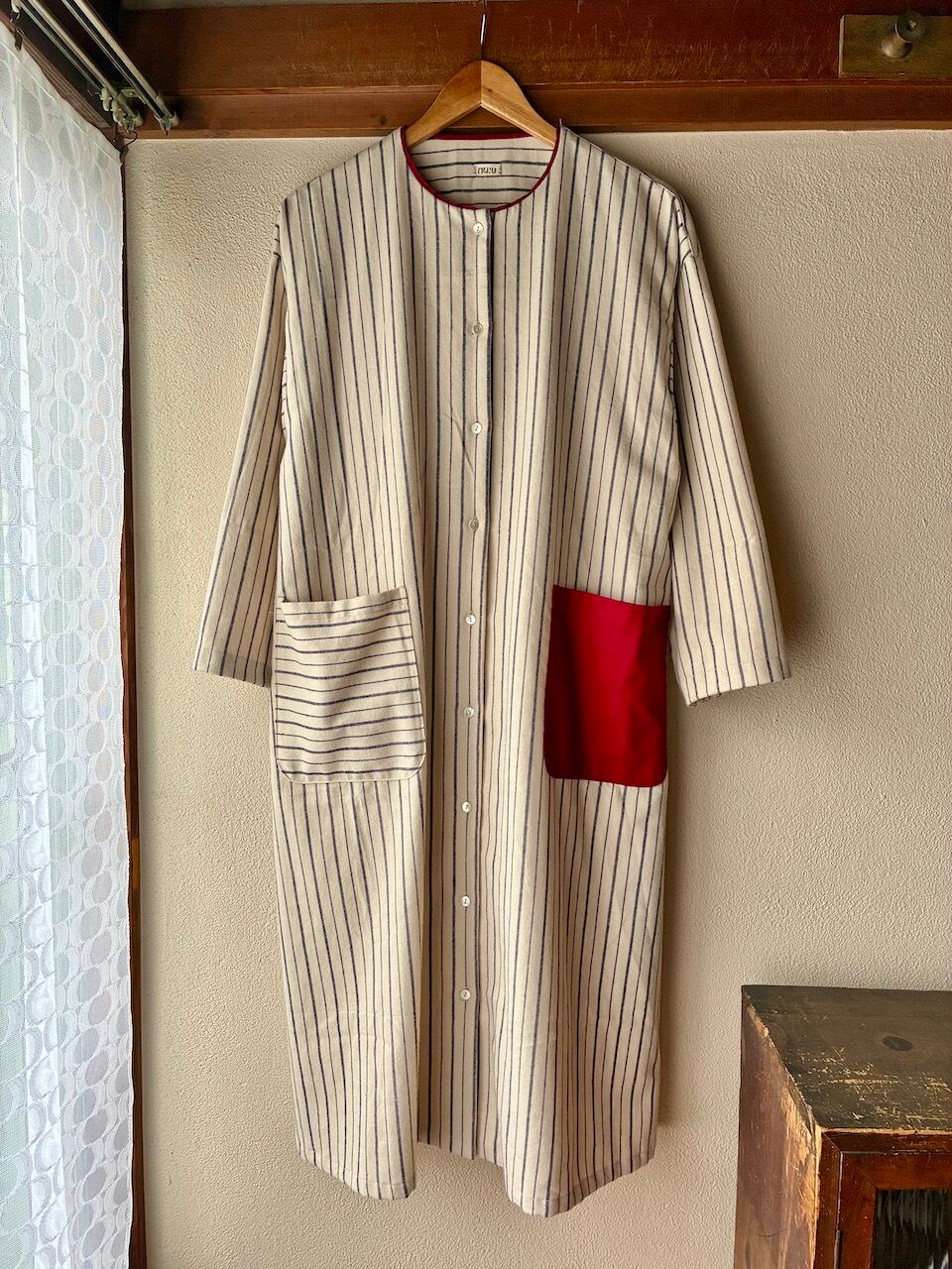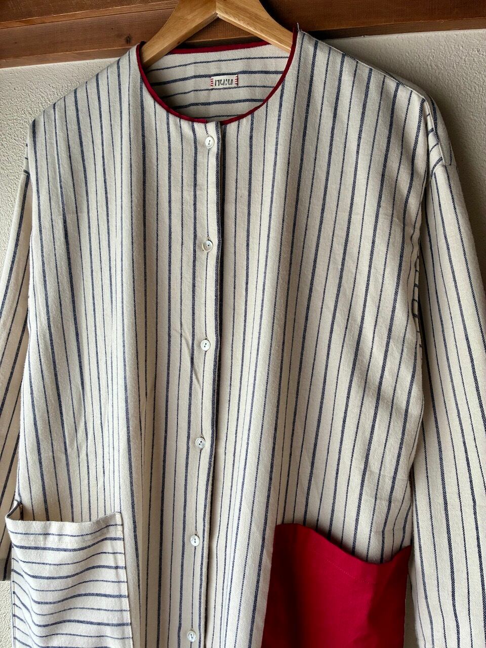 襟ぐりには切りっぱなしのアクセントカラーを挟み込んで