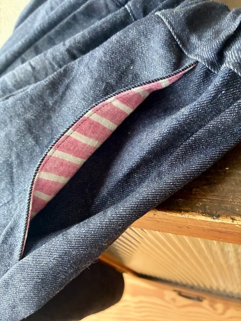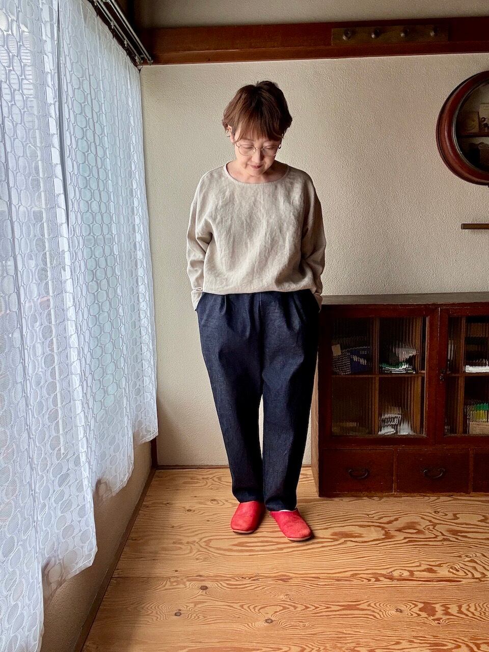 ちょいサルエルテーパードパンツ/9オンスストレッチデニム・ペンキドットB