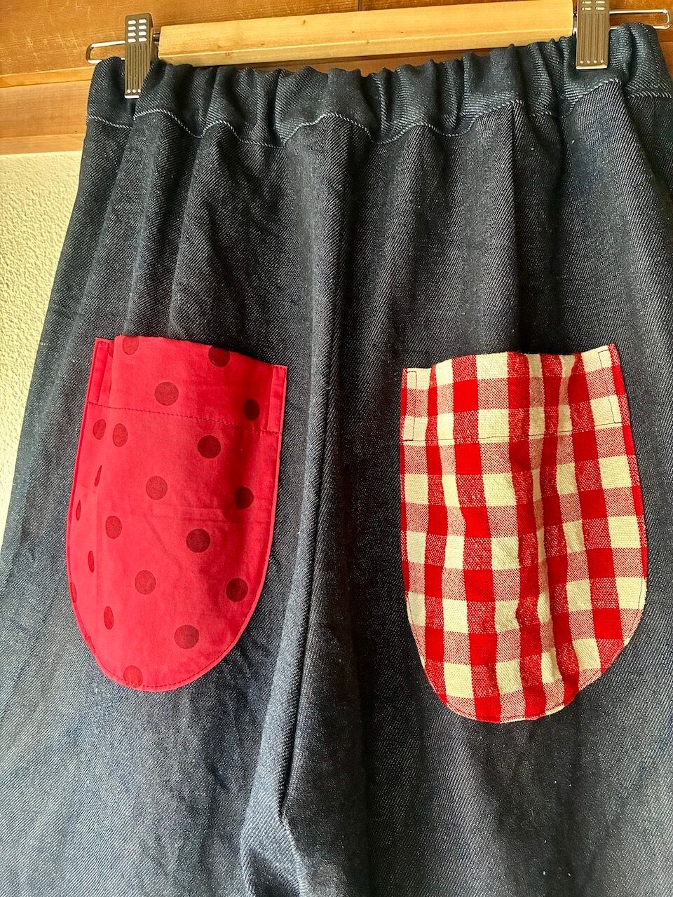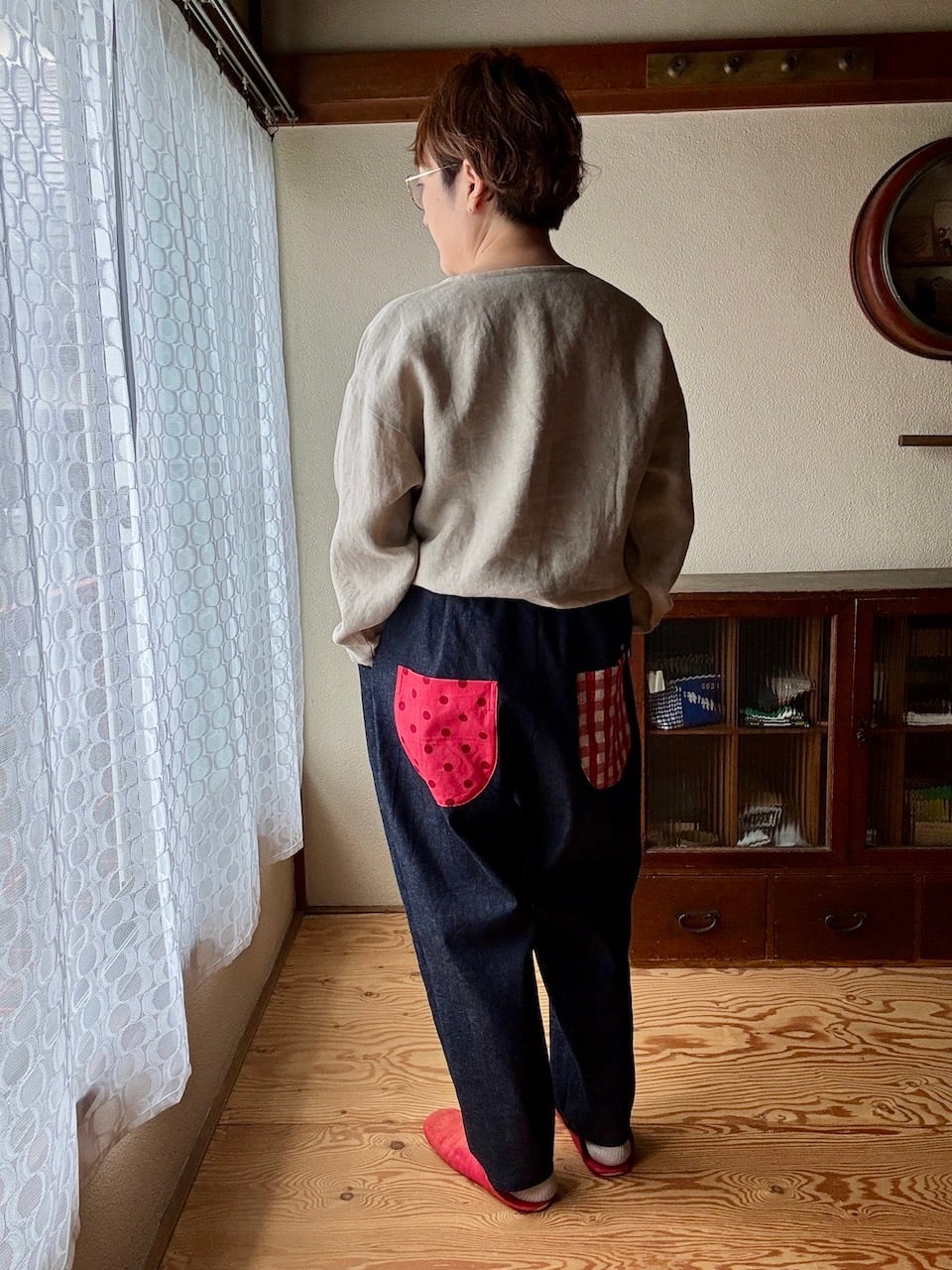 ちょいサルエルテーパードパンツ/9オンスストレッチデニム・カラフルP赤