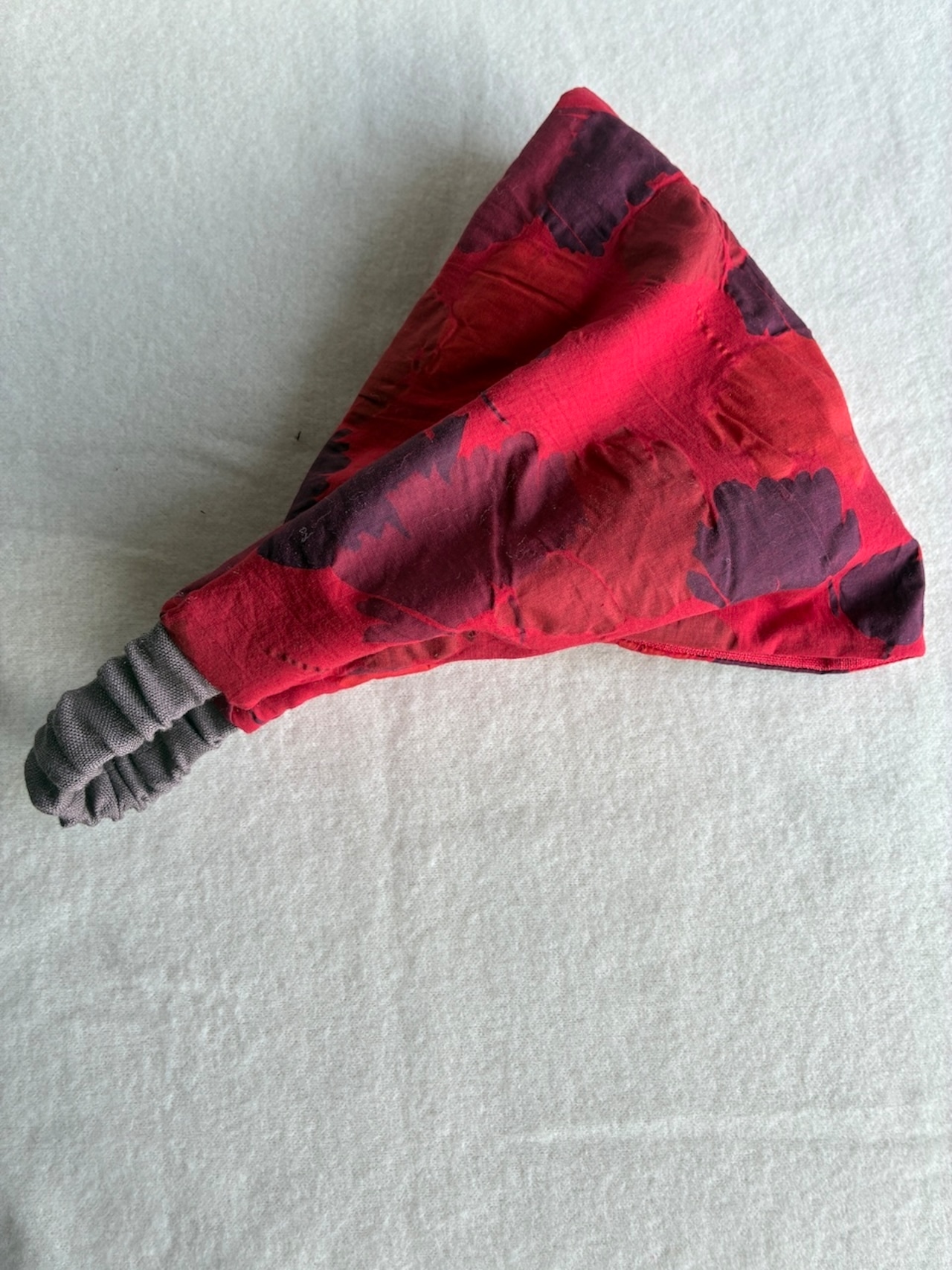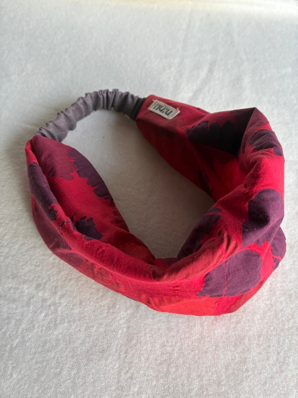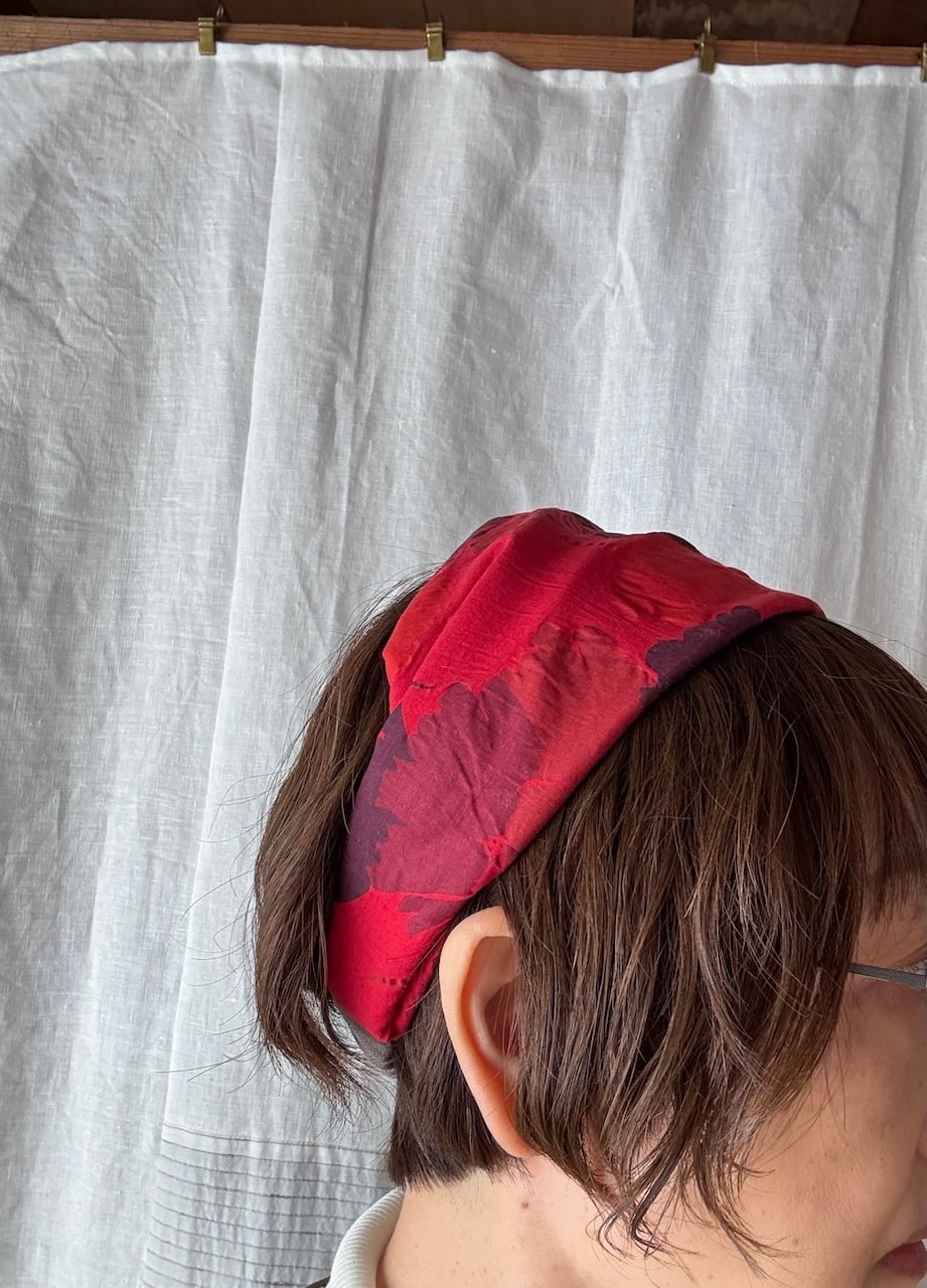 綺麗な赤色花柄のヘアバンド。